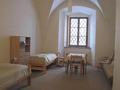 Ubytování je na dvou až třílůžkových pokojích, kde mohou být i samy. K dispozici je malá knihovna.